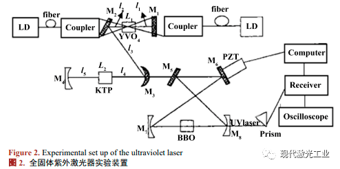 全固態(tài)紫外激光器的突出優(yōu)點(diǎn)有便捷體積小、可靠性高和工作穩(wěn)定等。最常用的是 LD 泵浦慣用的Nd:YAG 晶體,再進(jìn)行倍頻如圖 2 所示[4]。