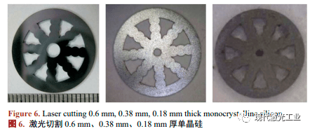 在科學(xué)技術(shù)和現(xiàn)代工業(yè)的快速發(fā)展的信息化時(shí)代,要達(dá)到在更小空間內(nèi)搭建更多的實(shí)驗(yàn)系統(tǒng)并實(shí)現(xiàn) 更多的功能,就要加快信息技術(shù)的發(fā)展更重要的是要制作加工出更小型化、微型化并且僅對材料表面化 學(xué)鍵進(jìn)行處理[22]的功能齊全的器件。在軍事雷達(dá)通訊[23]、醫(yī)學(xué)治療、航空航天和生物化學(xué)等領(lǐng)域具有 重要的應(yīng)用和研究價(jià)值??梢栽诩{米尺度的微光學(xué)元件上進(jìn)行更加深入的切割和優(yōu)化并研究和開發(fā)應(yīng)用,轉(zhuǎn)變傳統(tǒng)的光學(xué)元器件功能和特性。微光學(xué)元件具有容易批量生產(chǎn)和易于實(shí)現(xiàn)陣列化還有簡小輕便靈活 等優(yōu)點(diǎn),但是它的主要材料是石英玻璃。石英玻璃在應(yīng)用和處理過程中很容易產(chǎn)生裂紋和凹坑,是一種 硬脆性材料,這就使其光學(xué)性能大大減弱。因此,紫外激光的直寫“冷”加工技術(shù)[24]大大提高了微光學(xué)器 件的效率,迅速完成高精度微細(xì)結(jié)構(gòu)的微光元器件加工且不傷材料,可以靈活完成大小批量的不同需求 的加工。國外科研機(jī)構(gòu)對紫外紫外加工硅片的研究比較早[25],國內(nèi)起步較晚隨后才對硅片切割技術(shù)及切面進(jìn)行研究[26]。十幾年前,張菲等人利用自己研發(fā)的紫外全固態(tài)激光對微加工系統(tǒng)進(jìn)行了研究,對相同 材質(zhì)的三種(0.18 mm、0.38 mm、0.6 mm)的硅片進(jìn)行優(yōu)化切割,最小孔徑 45 μm,加工精度 20 μm,結(jié)果 表明材料沒有出現(xiàn)裂痕,激光的熱影響較小,飛濺物較少[27]如圖 6 所示。