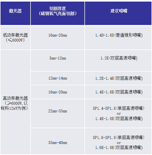 以波刺12kW切割頭為例,焦點(diǎn)搭配噴嘴(0焦必須要校準(zhǔn)):