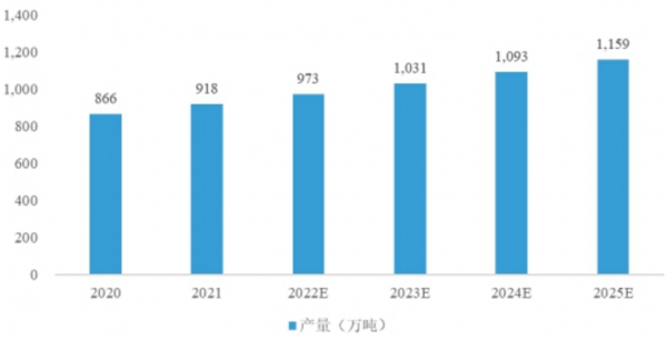 2020-2025 年中國(guó)橋梁鋼結(jié)構(gòu)產(chǎn)量現(xiàn)狀及預(yù)測(cè)(數(shù)據(jù)來(lái)源:中金企信國(guó)際咨詢(xún))