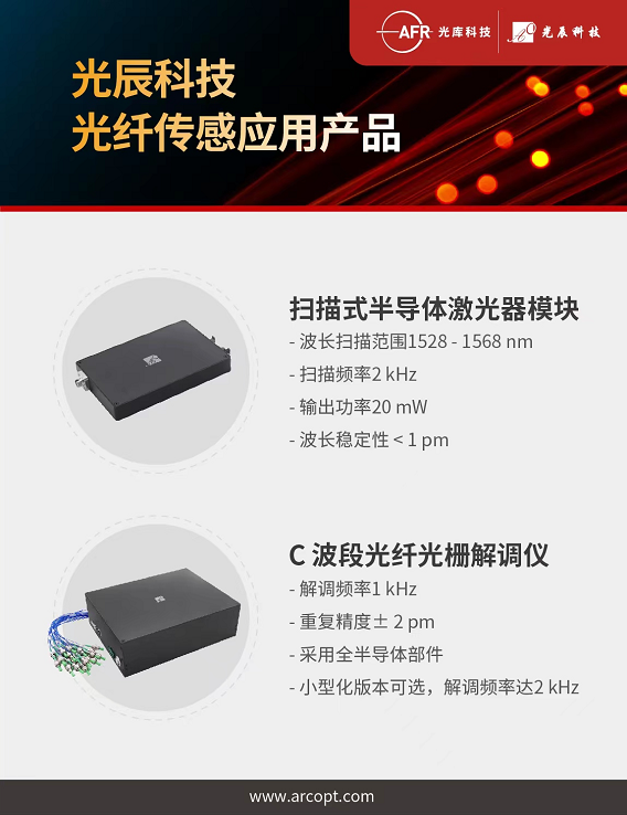 光辰科技(光庫科技全資子公司)掃描式半導(dǎo)體激光器模塊、C 波段光纖光柵解調(diào)儀,是搭建FBG光纖傳感系統(tǒng)的核心部件:
