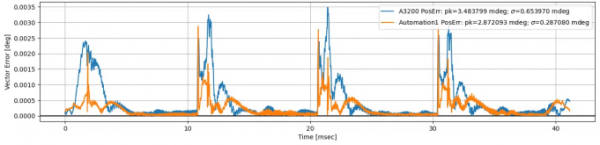 總而言之,Automation1 運(yùn)動(dòng)控制平臺(tái)在雷射掃描頭系統(tǒng)中的增加軌跡速率、提高伺服速率和降低所需的內(nèi)插速率顯著改善了通常稱為“追蹤”或“跟隨”輪廓運(yùn)動(dòng)的性能。