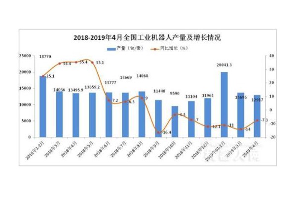4月我國工業(yè)機(jī)器人產(chǎn)量45258臺,同比下降10.2%