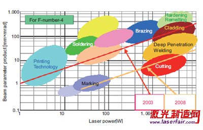 隨著半導(dǎo)體材料外延生長技術(shù)、半導(dǎo)體激光波導(dǎo)結(jié)構(gòu)優(yōu)化技術(shù)、腔面鈍化技術(shù)、高穩(wěn)定性封裝技術(shù)、高效散熱技術(shù)水平的不斷提高,半導(dǎo)體激光器功率及光束質(zhì)量飛速發(fā)展,促進(jìn)了直接工業(yè)用半導(dǎo)體激光加工(laser oem)系統(tǒng)和高功率光纖激光器的發(fā)展。目前國際上直接工業(yè)用大功率半導(dǎo)體激光器在輸出功率5000 W級別已超過燈抽運(yùn)固體激光器的光束質(zhì)量,在1000 W級別已超過全固態(tài)激光器的光束質(zhì)量。隨著化合物半導(dǎo)體技術(shù)的進(jìn)步,工業(yè)用大功率半導(dǎo)體激光器的輸出功率和光束質(zhì)量將進(jìn)一步提高,將進(jìn)一步擴(kuò)展其工業(yè)應(yīng)用范圍。在高功率光纖激光器抽運(yùn)源方面,光纖耦合輸出的功率不斷上升,光纖芯徑和數(shù)值孔徑不斷降低,導(dǎo)致光纖激光器的抽運(yùn)亮度不斷提高,同時(shí)成本卻不斷下降,因此未來高功率光纖激光器的輸出功率與光束質(zhì)量也將不斷地提高??梢灶A(yù)計(jì),在未來工業(yè)激光加工(laser oem)中,特別是在金屬激光加工(laser oem)領(lǐng)域,大功率半導(dǎo)體激光器主要應(yīng)用在激光表面處理、激光熔覆和近距離激光焊接領(lǐng)域,而大功率光纖激光器主要應(yīng)用在光束質(zhì)量要求更高的激光切割和遠(yuǎn)程激光焊接領(lǐng)域。