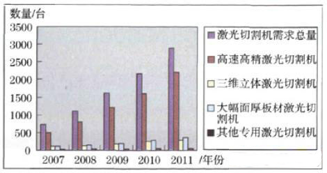 近幾年國內(nèi)高功率數(shù)控激光切割(laser cutting)機(laser cutting)的市場增長趨勢如圖1所示。