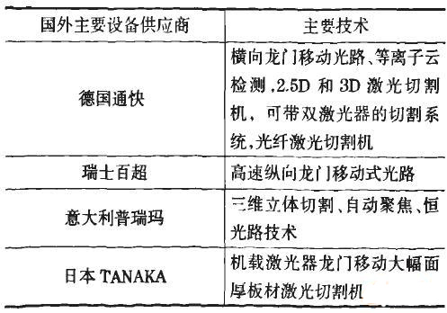 表l 國際代表性激光切割(laser cutting)設(shè)備制造商主要技術(shù)