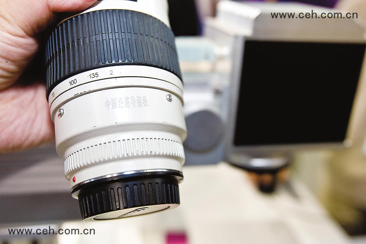 記者把隨身攜帶的照相機(jī)穩(wěn)穩(wěn)地放置在一個(gè)小平臺上,一聲令下,細(xì)密的光束從機(jī)器中射出,幾秒鐘后,光束消失,照相機(jī)的外殼上已經(jīng)用漂亮的字體寫著“中國經(jīng)濟(jì)導(dǎo)報(bào)”6個(gè)字。