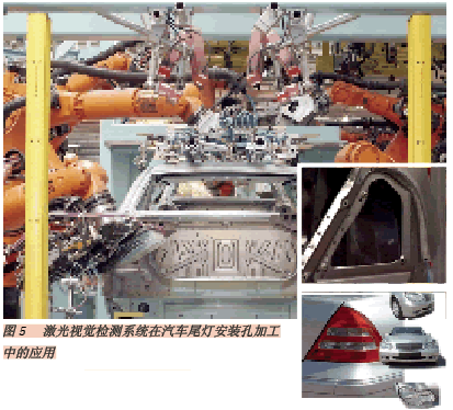 除此之外,激光視覺檢測(cè)系統(tǒng)還被廣泛應(yīng)用于焊裝生產(chǎn)中,如門蓋裝配、前端切削焊接以及車身后部后尾燈定位孔的形成等。