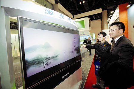 日前,一款激光電視亮相2010中國綠色產(chǎn)業(yè)和綠色經(jīng)濟(jì)高科技國際博覽會。據(jù)介紹,激光電視色域覆蓋率理論上可以高達(dá)人眼色域范圍的90%以上,比目前LED電視最高的62%色域覆蓋率又提高了一個檔次。電視畫面看起來更真實、更有層次感,清晰度也更高,壽命更長,比傳統(tǒng)光源節(jié)能50%。目前,激光顯示技術(shù)主要應(yīng)用在激光投影和激光電視上。北京、南京等地已有多家激光電影院開張,市場反響不錯。