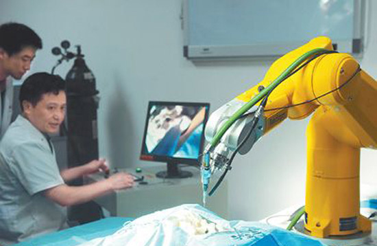 中國研制出世界首臺脊柱微創(chuàng)手術(shù)機器人