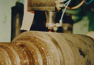 激光硬化就是激光淬火,是用高能激光束快速掃描氣缸孔表面,在表面極薄一層的小區(qū)域內(光斑大小)快速吸收能量而使溫度急劇上升(見圖2、圖3)。由于金屬基體優(yōu)良的傳熱、導熱性,表面熱量迅速傳到氣缸基體的其他部分,從而在極短的瞬間完成自冷淬火,實現(xiàn)氣缸孔表面的相變硬化。