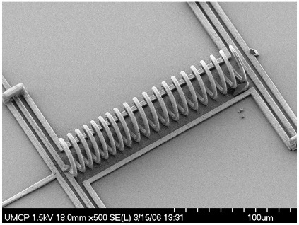 圖中是采用多光子吸收聚合作用(MAP)、接著又以選擇性金屬化(selective metallization)所制作的微電感(microinductor)