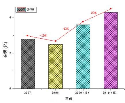 #p#分頁(yè)標(biāo)題#e#對(duì)我省的專業(yè)生產(chǎn)激光成套設(shè)備的25家企業(yè)進(jìn)行統(tǒng)計(jì),近三年在我省的激光器銷售額增長(zhǎng)趨勢(shì)如圖1所示。由此可見,2007年我省自產(chǎn)的激光設(shè)備銷售額達(dá)2.8億元,隨著2008年經(jīng)濟(jì)危機(jī)的到來(lái),省內(nèi)對(duì)激光設(shè)備的需求有所下降,2008年的激光器銷售量相對(duì)減少,銷售額降至2.5億元,隨著經(jīng)濟(jì)的復(fù)蘇,2009年開始銷售量有所回升,可銷售額增幅不大,2009年前三季度的銷售額為2.93億元,預(yù)計(jì)2009年銷售額在3.6億元左右,預(yù)計(jì)2010年銷售額增長(zhǎng)20%,達(dá)4.3億元。預(yù)測(cè)的根據(jù)在于我省的部分高成長(zhǎng)性企業(yè)的技術(shù)已日趨成熟。