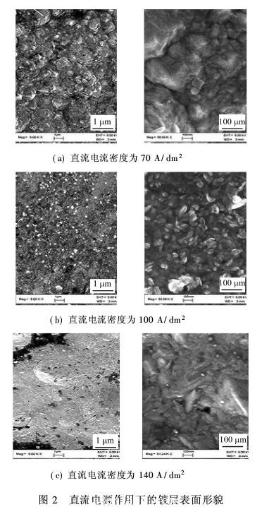 2.1直流電流密度對表面形貌的影響