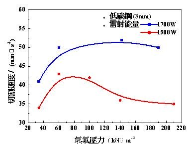 9. 輔助氧氣壓力與切割速度間的關(guān)系圖