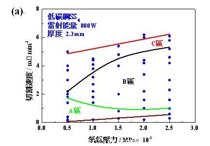 4. 雷射功率、切割速度與板厚間的關(guān)系圖