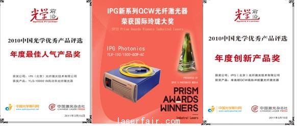 此次展會(huì),IPG推出眾多新品,得到了市場(chǎng)和業(yè)內(nèi)專家學(xué)者的高度贊揚(yáng)和肯定,引領(lǐng)著光纖激光行業(yè)發(fā)展的方向。其中,在中國(guó)激光雜志社聯(lián)合上海慕尼黑展覽中心聯(lián)合推出的“2010中國(guó)光學(xué)優(yōu)秀產(chǎn)品”評(píng)選中,IPG新推出的準(zhǔn)連續(xù)QCW高脈沖能量光纖激光器獲得了“年度創(chuàng)新產(chǎn)品獎(jiǎng)”,YLS-10000W高功率光纖激光器也被評(píng)為“年度最佳人氣產(chǎn)品”。無獨(dú)有偶,QCW光纖激光器在2011116日美國(guó)舊金山獲得了由SPIE舉辦的工業(yè)激光玲瓏大獎(jiǎng)。IPG(北京)總經(jīng)理顧波博士表示:我們很高興地看到公司研制的產(chǎn)品不僅受到用戶的喜愛,還贏得了國(guó)際專家的贊譽(yù),使我們能夠從眾多優(yōu)秀的候選者中脫穎而出。我們之所以能夠獲此殊榮,也是源于我們?cè)诩す忸I(lǐng)域的不斷探索與創(chuàng)新。IPG光纖激光器在工業(yè)應(yīng)用上將會(huì)繼續(xù)保持領(lǐng)先,不斷創(chuàng)新技術(shù),取得長(zhǎng)足發(fā)展。