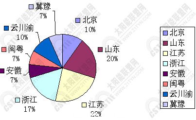 如圖1所示,在此次選取的樣本中,江蘇、山東和浙江三個太陽能企業(yè)集中度較高地區(qū)的企業(yè)位居前列,均占到被調(diào)查企業(yè)數(shù)的15%以上,其次是北京和安微,分 別占到了10%、7%。由于云南、四川、重慶、福建、廣東等地企業(yè)分布較散,故沒有單獨(dú)按照省份進(jìn)行企業(yè)樣本抽查,而是分為云川渝和閩粵兩個區(qū)域進(jìn)行樣本 選取。