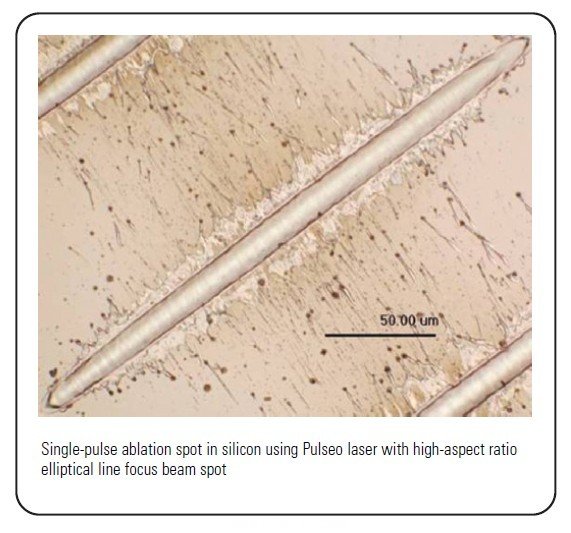 2. Pulseo激光器經(jīng)過扁長形光束聚焦后作用在硅晶圓表面上的單脈沖熔化點