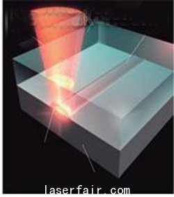 在熱塑性塑料的焊接過程中,兩個(gè)待焊塑料零件用夾緊夾具夾在一起,其中的一個(gè)塑料件能使激光穿透,而另一個(gè)塑料件能吸收激光的能量。激光束通過上層的透光材料到達(dá)焊接平面,然后被下層材料吸收。激光能量被吸收使得下層材料溫度升高,熔化上層和下層的塑料,最后凝固成牢固的焊縫。