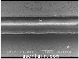 該圖是通過掃描電子顯微鏡拍攝的。圖片顯示了通過超快脈沖激光產(chǎn)生的微通道。