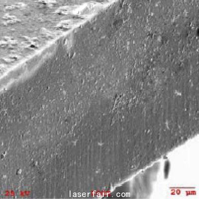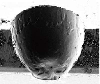 有時也會用到盲孔。這種要求實現(xiàn)一個平滑的內(nèi)部輪廓。圖5是用20W脈沖激光器在硅片上鉆出的一個盲孔。