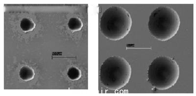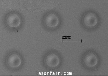 圖5:用20W脈沖激光器在硅片上打出的盲孔。