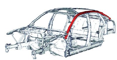 圖3 紅色部分為使用激光混合焊接工藝的奧迪A8框架頂側(cè)梁的焊縫