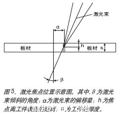 圖5示意了進行激光焊接時其焦點位置參數(shù)的選擇,主要包括有離焦量h(即焦點離工件表面的距離、豎直焦點位置或焦點高度)、偏移量(即水平焦點位置)和入射角(即激光束傾斜的角度)三個參數(shù)。