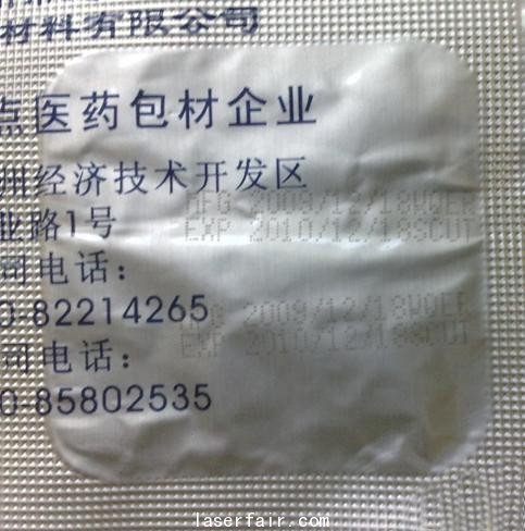 樣機(jī)能夠進(jìn)行流水碼、自定義生產(chǎn)日期、自定義有效日期、自定義字符串等多種編碼的組合打碼。圖9是用該打碼機(jī)打碼后的藥品包裝,圖10是用該打碼機(jī)打碼的飲料包裝。樣機(jī)還具有紅光預(yù)覽的功能。