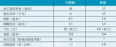 表2給出了利用光纖激光器切割10毫米厚不銹鋼和15毫米厚軟鋼要達(dá)到最佳的切割質(zhì)量所需要的加工參數(shù)(見圖6)。為了獲得最好的切縫質(zhì)量,所需的最佳切割速度要比能實(shí)現(xiàn)的所給出的輸出激光功率慢,因?yàn)樗玫那懈钏俣葘?duì)切縫下端的殘?jiān)鄯e會(huì)產(chǎn)生影響。累積殘?jiān)a(chǎn)生于切割速度大于最佳的預(yù)防殘?jiān)鄯e切削速度的時(shí)候。