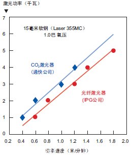 光纖激光器切割在切割薄型金屬的時候,相比CO2激光器有明顯的速度優(yōu)勢,如圖1所示。從圖2和圖3中可以看出,在所標明的切割速度下,光纖激光器切割比CO2激光器所需要的功率要低,說明工件材料所吸收的光纖激光器光束更多,從而提高光纖激光器光束的融化速度。表1中呈現(xiàn)的是圖2和圖3光纖激光系統(tǒng)應用中的規(guī)格。光纖激光器的速度優(yōu)勢在切割厚型金屬的時候并不明顯。對于較大的工件厚度(大于4毫米),光纖激光器切割速度下降到一個相當于CO2激光器切割速度的水平。從本質上講,光纖激光器切割大型厚工件的速度大幅下降,主要歸因于光纖激光器輻射的吸收機制。金屬部件對光纖激光器輻射的吸收性在其厚度較小的時候達到最高值,隨之變厚時而下降;相反CO2激光器的輻射吸收性隨著加工金屬部件的厚度增加而增強,在加工部件厚度達到最高的時候吸收性也隨之達到最高值。