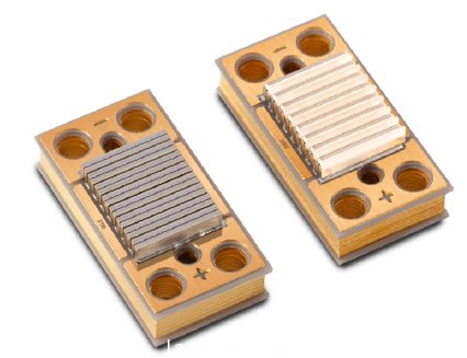 這些器件完全采用AuSn 硬焊料技術(shù)焊接而成,專為高溫環(huán)境下的運行而特別設(shè)計,適合像固體激光器泵浦源以及國防這類要求千瓦范圍內(nèi)的準(zhǔn)連續(xù)激光的應(yīng)用。模塊整體結(jié)果緊湊,便于設(shè)備集成應(yīng)用。