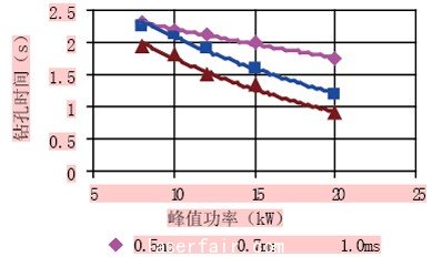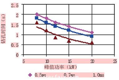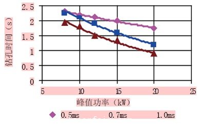 5 #p#分頁標(biāo)題#e#不同脈沖寬度時(shí)的鉆孔時(shí)間 (與表面成20角,JK300D,O2 輔助)