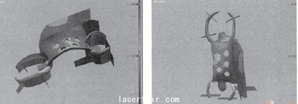 從圖8可以清楚地看到:第一,沒有深紅色及深藍(lán)色存在,說明偏差值均在±1121121之間,第二。圖中綠色面積較大,只有極小部分是黃色與淺藍(lán)色,說明三維重建后模型與CAD模型比較,部分是吻合的,沒有偏差,即使有偏差的地方,顏色也比較淺,故偏差值也較小。