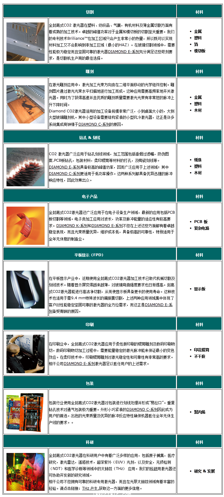 切割 材料 全封離式CO2 激光器在塑料、紡織品、氣囊,有機材料及薄金屬切割方面有著成熟的加工技術(shù)。卓越的峰值功率對于金屬和模切板的切割至關(guān)重要。我們的專利技術(shù)Bri...
