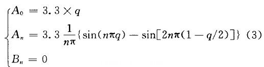 F2812芯片提供的PWM信號,是一種周期和占空比均可變、高電平VH=3.3V,低電平VL=0V的脈寬調制(PWM)信號。由傅里葉變換可知,對于以時間軸原點為對稱點的、單極性的PWM信號可寫成表達式: