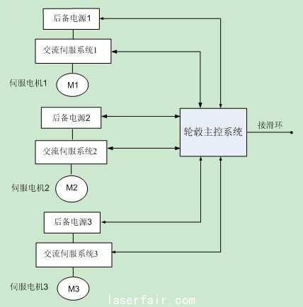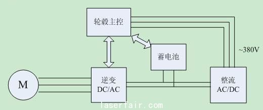 3變槳控制器的設(shè)計(jì) 3.1系統(tǒng)的硬件構(gòu)成 本文實(shí)驗(yàn)中采用的電動(dòng)獨(dú)立變槳距系統(tǒng)由交流 伺服系統(tǒng) 、伺服電機(jī)、后備電源、輪轂主控構(gòu)成。電動(dòng)變槳距系統(tǒng)結(jié)構(gòu)如圖5、6所示。系...