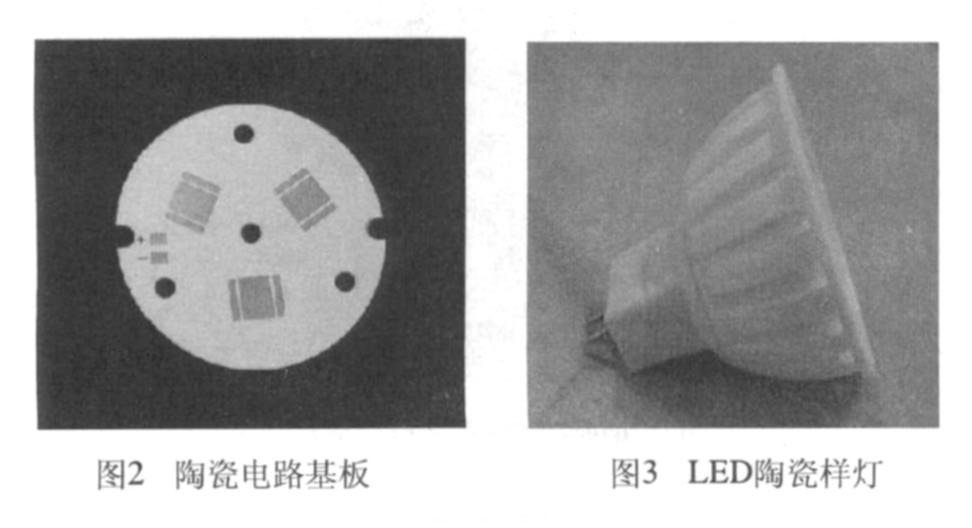 LED燈具的散熱器用于將熱量散發(fā)到周圍的空間中,散熱器常采用氧化鋁(Al2O3)陶瓷材料(樣燈如圖3所示)。氧化鋁陶瓷價格便宜,技術成熟,采用壓鑄燒結技術,設計自由度大,價格較低,現(xiàn)階段得到一定規(guī)模的應用,下文將對此進行詳細分析。