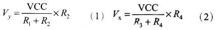 觸摸屏的兩個金屬導(dǎo)電層分別用來測量X軸和Y軸方向的坐標(biāo)。用于X坐標(biāo)測量的導(dǎo)電層從左右兩端引出兩個電極,記為X+和X-。用于Y坐標(biāo)測量的導(dǎo)電層從上下兩端引出兩個電極,記為Y+和Y-。這就是四線電阻觸摸屏的引線構(gòu)成。當(dāng)在一對電極上施加電壓時,在該導(dǎo)電層上就會形成均勻連續(xù)的電壓分布。若在X方向的電極對上施加一確定的電壓,而Y方向電極對上不加電壓時,在X平行電壓場中,觸點處的電壓值可以在Y+(或Y-)電極上反映出來,通過測量Y+電極對地的電壓大小,便可得知觸點的X坐標(biāo)值。同理,當(dāng)在Y電極對上加電壓,而X電極對上不加電壓時,通過測量X+電極的電壓,便可得知觸點的Y坐標(biāo)。測量原理如圖1所示。