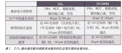 未來趨勢(shì):半導(dǎo)體泵浦固體紫外激光器也用于鉆微孔。這些激光器的短波長和高光束質(zhì)量可提供更小的聚焦尺度。相對(duì)于CO2激光器(能產(chǎn)生100 m大小范圍內(nèi)的大多數(shù)微孔),小的焦點(diǎn)以及紫外固體激光器較低的平均功率(與CO2相比)使得紫外固體激光器處于不利地位。然而,隨著設(shè)備小型化的趨勢(shì)仍在繼續(xù),以及對(duì)于較小的微孔的需求增加,這些激光器的應(yīng)用將會(huì)擴(kuò)大。表1提供了CO2激光器與紫外固體激光器在該應(yīng)用方面的全面對(duì)比。