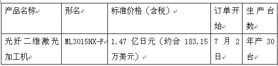 日本:三菱電機發(fā)售光纖二維激光加工機