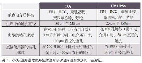 未來(lái)趨勢(shì):半導(dǎo)體泵浦固體紫外激光器也用于鉆微孔。這些激光器的短波長(zhǎng)和高光束質(zhì)量可提供更小的聚焦尺度。相對(duì)于CO2激光器(能產(chǎn)生100 m大小范圍內(nèi)的大多數(shù)微孔),小的焦點(diǎn)以及紫外固體激光器較低的平均功率(與CO2相比)使得紫外固體激光器處于不利地位。然而,隨著設(shè)備小型化的趨勢(shì)仍在繼續(xù),以及對(duì)于較小的微孔的需求增加,這些激光器的應(yīng)用將會(huì)擴(kuò)大。表1提供了CO2激光器與紫外固體激光器在該應(yīng)用方面的全面對(duì)比。