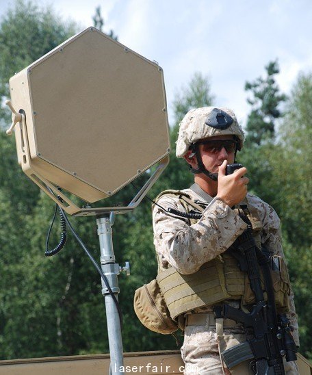 研究人員開(kāi)發(fā)了一種被稱(chēng)為“眩目干擾發(fā)射機(jī)”的裝置,在使用時(shí)可對(duì)敵方面部照射,產(chǎn)生的250毫瓦光線(xiàn)可以立刻讓4公里外的靠近者受到警告,是一種威脅能力較強(qiáng)的非致命性武器,曾經(jīng)被部署到伊拉克戰(zhàn)場(chǎng)上。