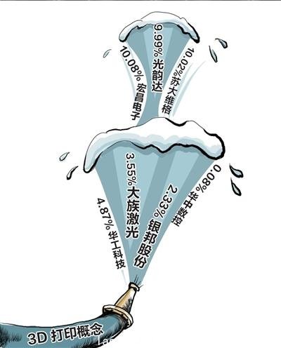 受相關(guān)消息影響,昨天,3D打印概念股重現(xiàn)井噴行情,截至收盤,宏昌電子、光韻達(dá)、蘇大維格紛紛強(qiáng)勢(shì)漲停,分別收于6.99元,15.20元和29.65元。華工科技上漲4.87%,大族激光上漲3.55%,銀邦股份、華中數(shù)控等相關(guān)概念股紛紛飄紅。