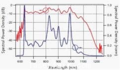 其次1030nm附近能發(fā)出特別高的功率,其值在無額外展寬下,10nm(FWHM)譜寬范圍大于30pJ,是泵浦放大理想的窄波種子,在任何前放大發(fā)出大于1nJ的脈沖時(shí),輸出都有效。