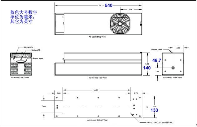 ※OEM標(biāo)準(zhǔn)型有風(fēng)冷和水冷兩種形式,包含鋁制外殼和風(fēng)扇,特別適合需要將激光器外露的使用場合。