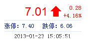 | 最 高: | 7.09 | 成交額: | 2.84億元 | 換手率: | 4.59% |