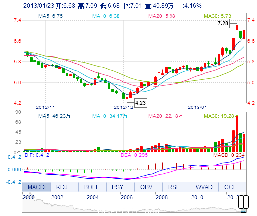 今 開: 6.68 成交量: 40.89萬手 振 幅: 6.09% 最 高: 7.09 成交額: 2.84億元 換手率: 4.59% 最 低: 6.68 總市值: 62.47億 市凈率: 2.39 昨 收: 6.73 流通市值...