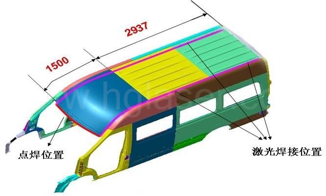 圖為江淮白車身激光焊接示意圖
